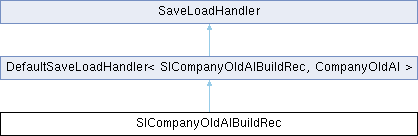 | Public Member Functions inherited from DefaultSaveLoadHandler< SlCompanyOldAIBuildRec, CompanyOldAI > | |